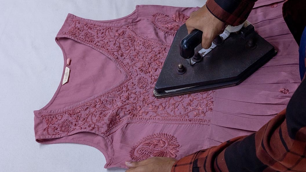 Chikankari uses more than 30 stitches that create a lace-like, monochromatic effect. The embroiderers use three kinds of stitches to get the desired effect. They are the flat stitches, the embossed stitches, and the jaali (lattice) work. Bold or delicate detailing covers the material being embroidered. Artists undergo training to learn florals, geometrical, and stylised patterns. They can train for several years and often specialise in specific stitches.