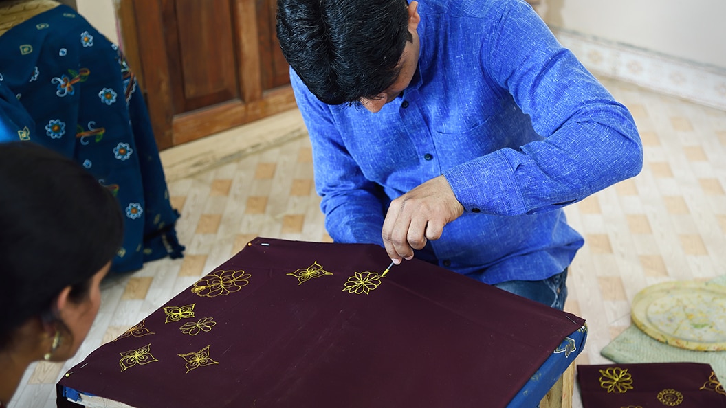 Traditionally, this craft featured floral and geometrical motifs. Over time, new designs such as “The Tree of Life,” have gained significant popularity. In the past, only men learnt the craft. Now, Kachchi women, who would traditionally only do embroidery as artisans, are also learning the intricate techniques of Rogan art.