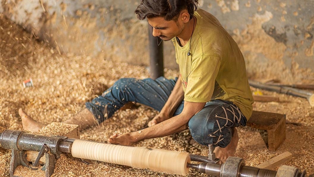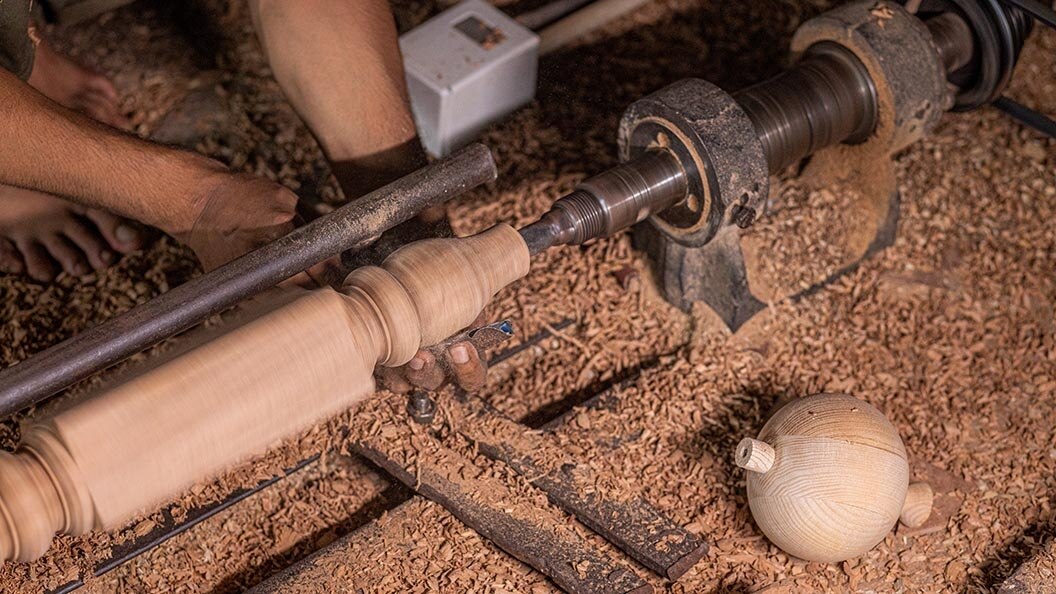 Wood turned carving is a speciality in Rajasthan with its profusion of grand buildings. In Rajasthan, woodturners use a lathe, where a piece of wood is mounted on a spindle and rotated, while a cutting tool is used to shape the wood into different designs. Examples of this kind of craving can still be seen in houses carrying the influence of royalty.