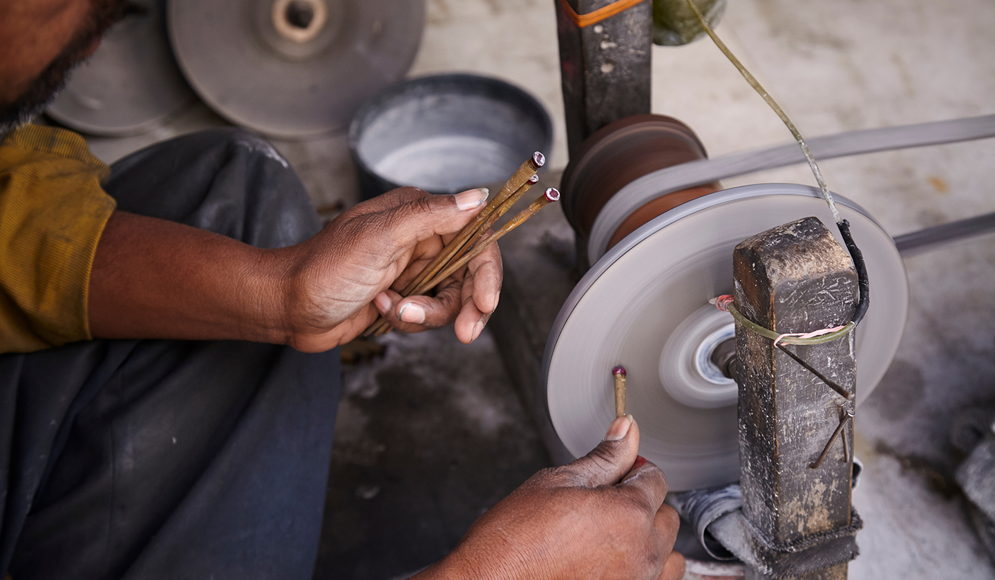 Gemstone stringing is essentially about a careful selection of gemstones, which can either match perfectly in size, clarity, shape, and colour, or each stone can be different from the other in type and size. They undergo a thorough cleaning and polishing process. Rough stones like emeralds and rubies are refined by tumbling them in a rotating barrel with abrasives and water. Holes are made using a rotating diamond-tipped rod or tube. Once shaped and prepared, gemstones are expertly strung together by the Patwas with metal wire, silk, or cotton thread using unique knotting and wrapping techniques. They are arranged in various patterns, ranging from multiple strands to geometric designs to those tightened with sarafas (adjustable thread strings), finished with a metallic clasp or fishhook.
