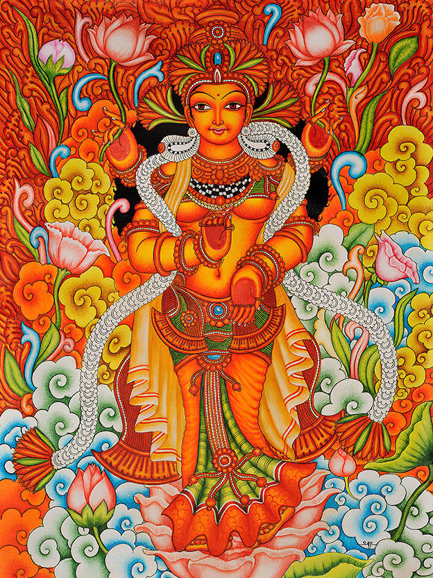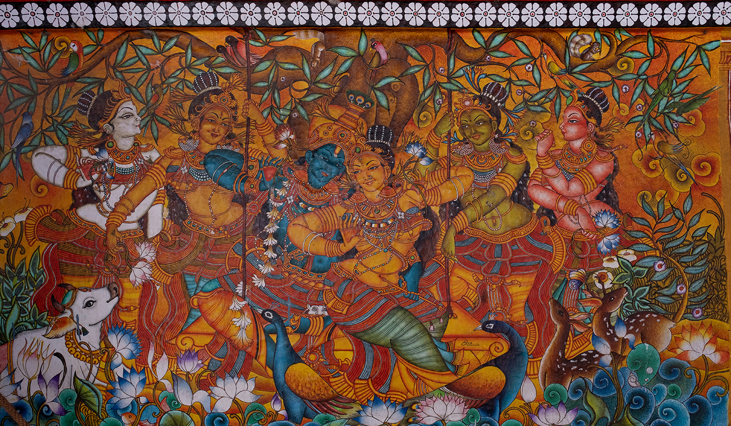 Expanding its horizons beyond temple walls, the art form is now found on canvases, clay, fabric and paper. Muralist PK Sadanandan has added a unique twist, by using canvas sourced from fishing boats in Kochi. His works can be seen in galleries and were also exhibited at the Kochi-Muziris Biennale 2016.