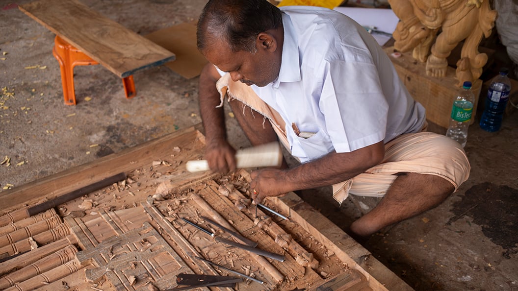 Wood carving is a revered art form with a history spanning two centuries. It is practised in the regions of Arumbavur, Kallakurichi, Chinnasalem and Thammampatti in Tamil Nadu. Each place boasts a distinctive style of wood carving. However, all the carvers uphold traditional iconography guidelines from the ancient scripture, Shilpa Shastra.