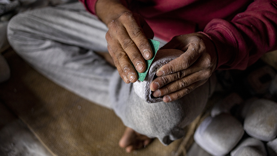 In Bihar, papier-mâché artisans use a pulp derived from recycling wastepaper, fuller’s earth and fenugreek powder. They use an adhesive of water and wheat flour to bind the creations.