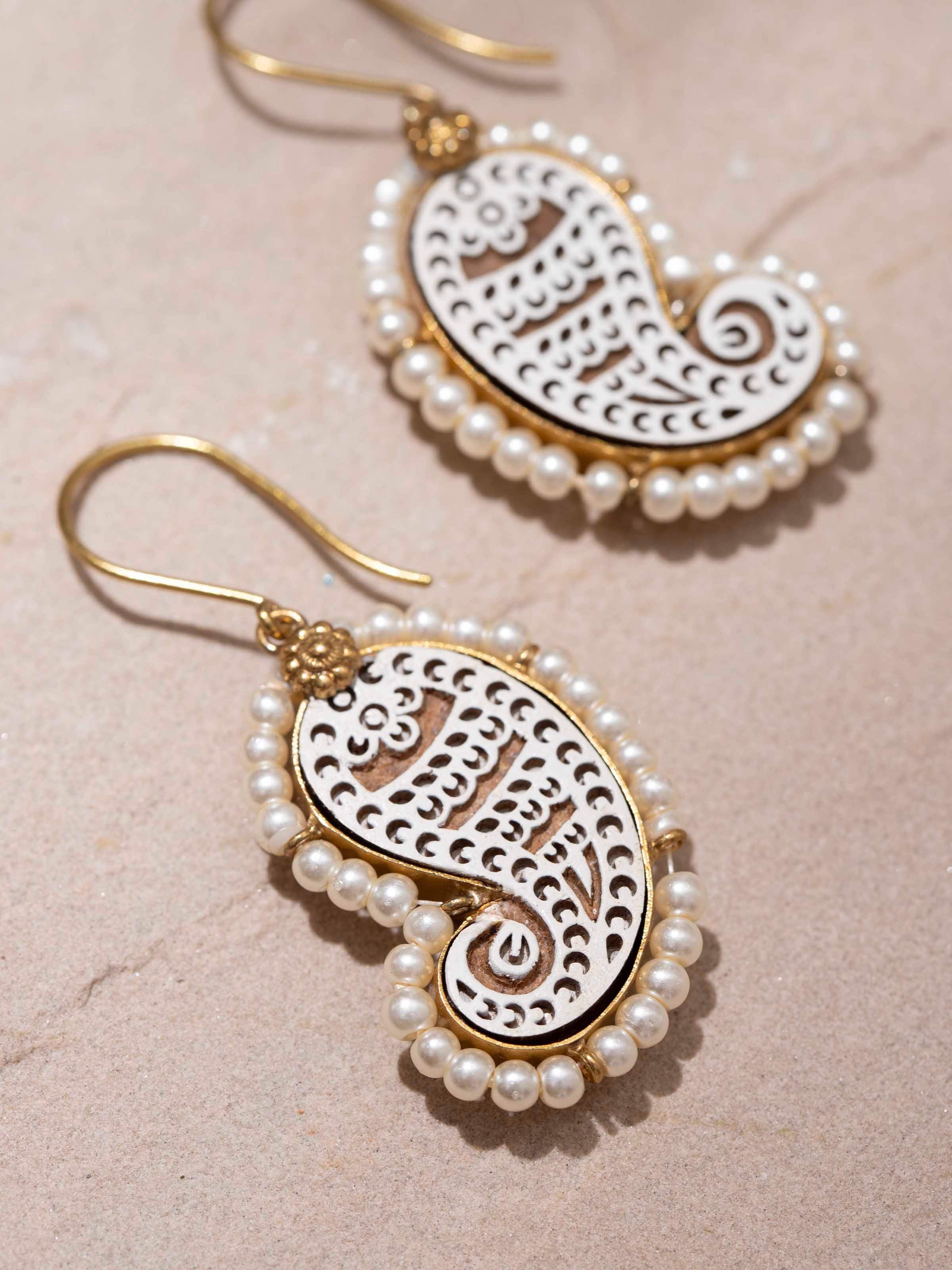 Express your artisanal charm with these earrings. Embellished with paisley motifs, they pair well with a simple anarkali suit or a saree.