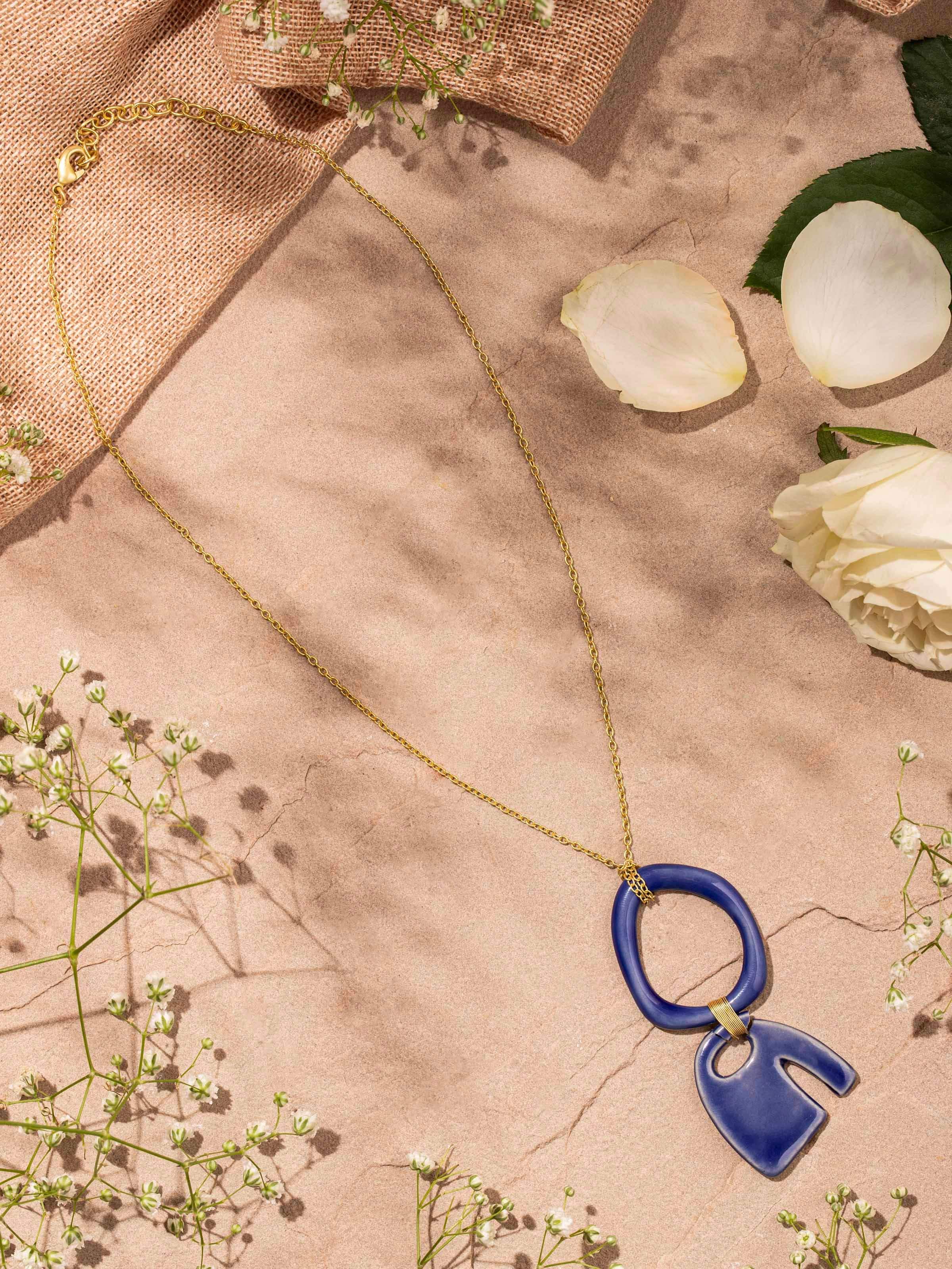 Showcasing elegant handiwork from the heart of Jaipur, this ceramic long necklace puts traditions in focus. Transform your look by pairing this with a flowy dress.