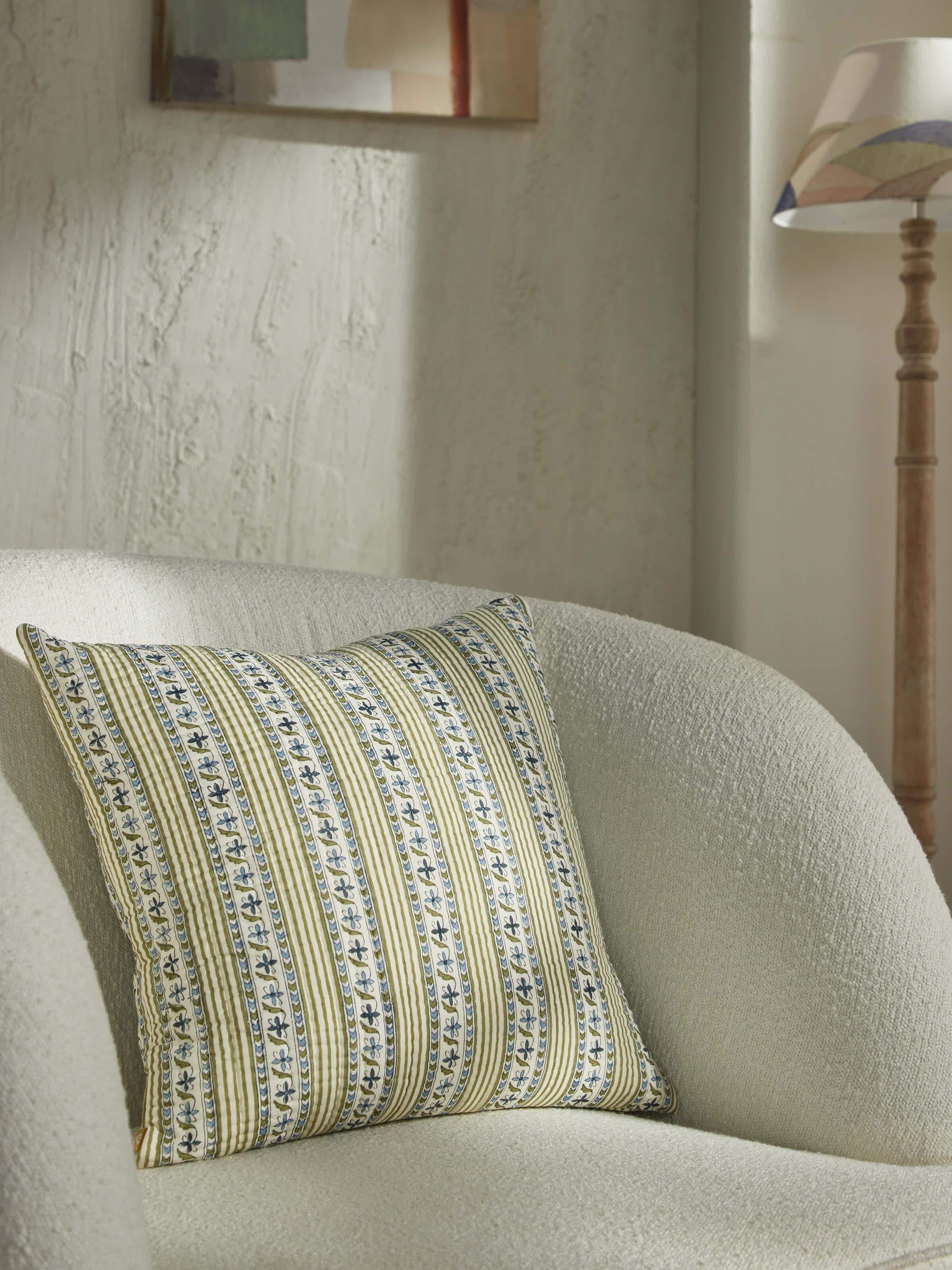 Aarunya Blue Stripe Cotton Sanganeri Hand Block Printed Cushion Cover