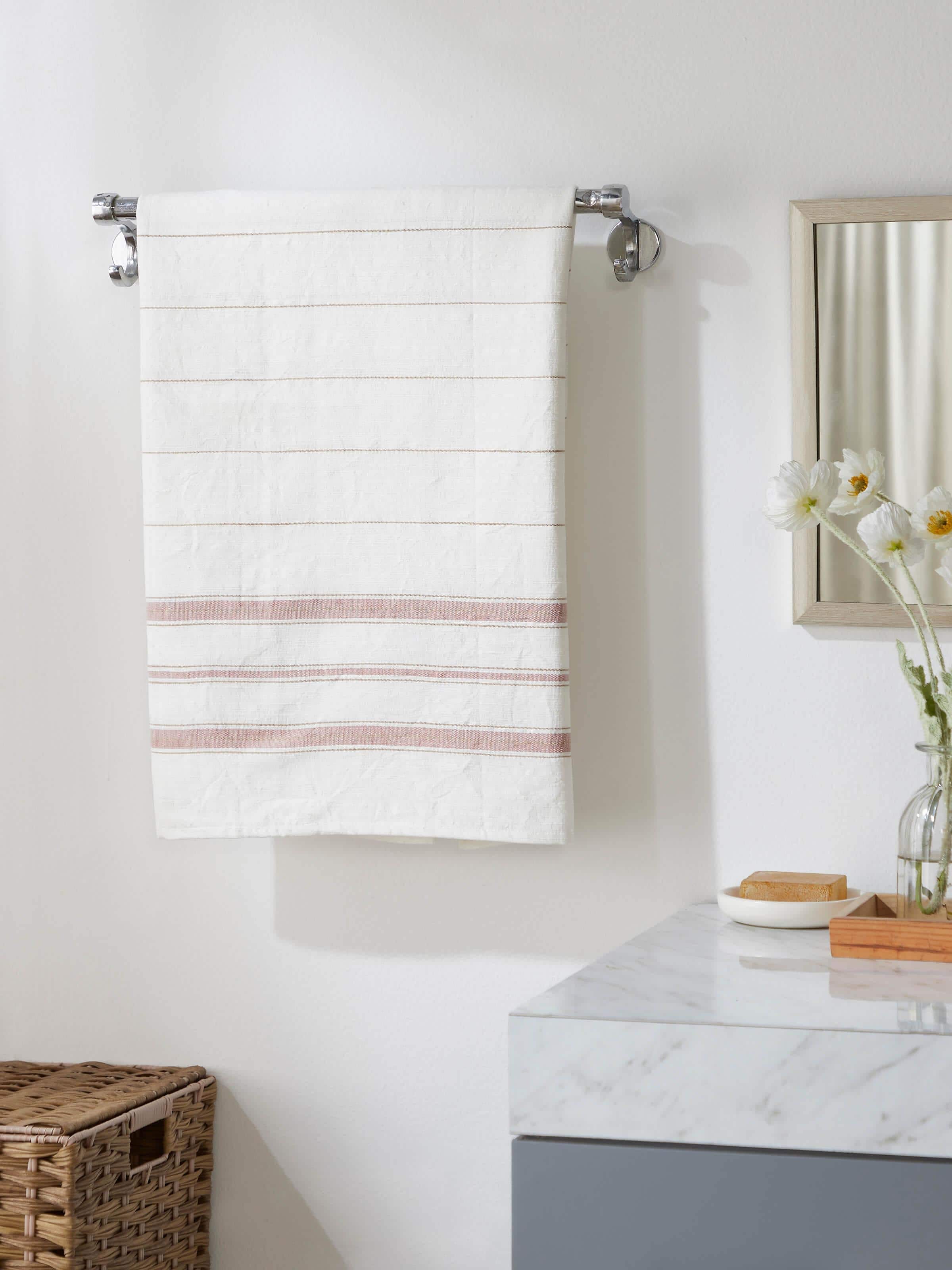 Embrace pure craftsmanship with this cotton bath towel, designed to elevate your self-care routine. Its refined stripe pattern complements your decor while offering unparalleled comfort.