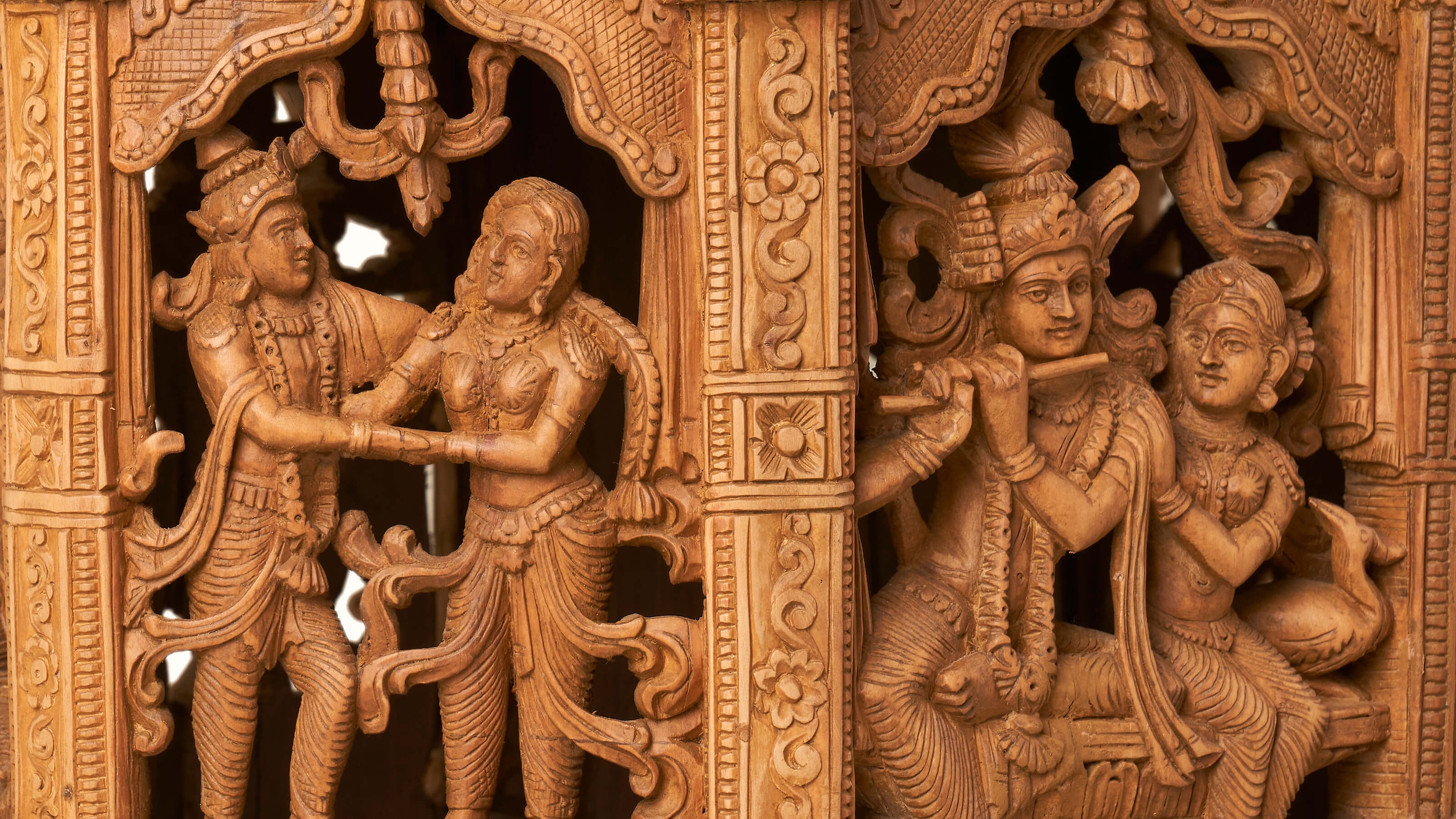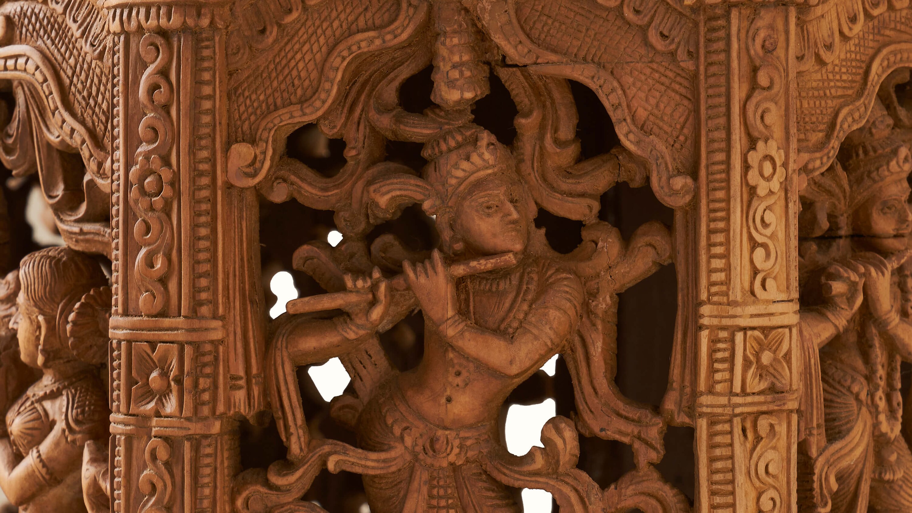 Sandalwood is considered auspicious across the Indian subcontinent. Used as incense, paste and oil, it is valued for its long-lasting fragrance, while the fine grain structure of this wood makes it easy to carve into intricate patterns and motifs.