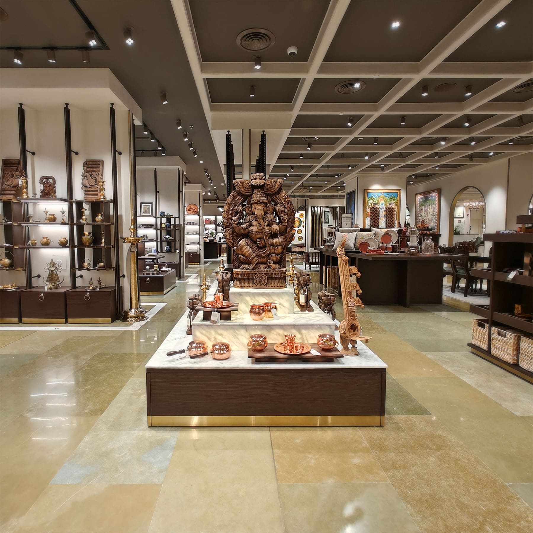 Discover the Swadesh store in Hyderabad, a luxurious destination that celebrates India’s heritage, craftsmanship, and spirituality. Located at Alcazar Mall, Jubilee Hills, this flagship space brings together exquisite handcrafted collections — from copperware and temple décor to textiles and fine art — all curated under the Reliance Swadesh initiative.