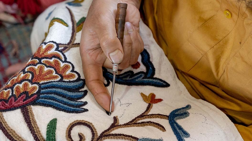 Jalakdozi, or the chain-stitch crewel embroidery, is a labour intensive craft, but a labour of love from the Kashmir Valley. The karigars or craftsmen spend hours working on the intricate motifs that embellish shawls, rugs, etc.
