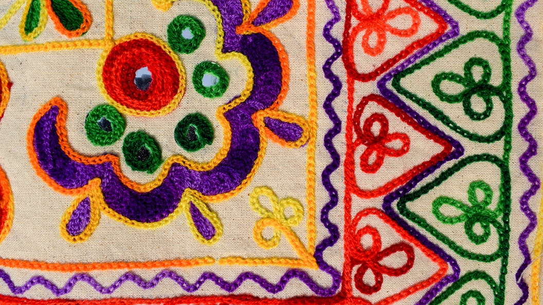 Kutch embroidery is done on fabrics like cotton, silk, wool, and mashru (silk-cotton blend). Coloured threads, including floss silk, are used in the needlework with a predominance of chain stitches. Artisans also use mirrors, beads, seashells and sequins to create luminescent patterns. The motifs are inspired by flora and fauna, folklore and also include geometric shapes. Materials, motifs, and techniques vary among communities, but the underlying meaning and message binds the craft.