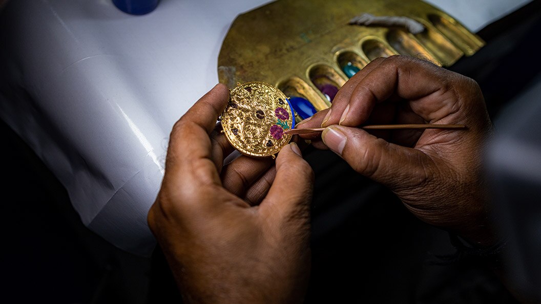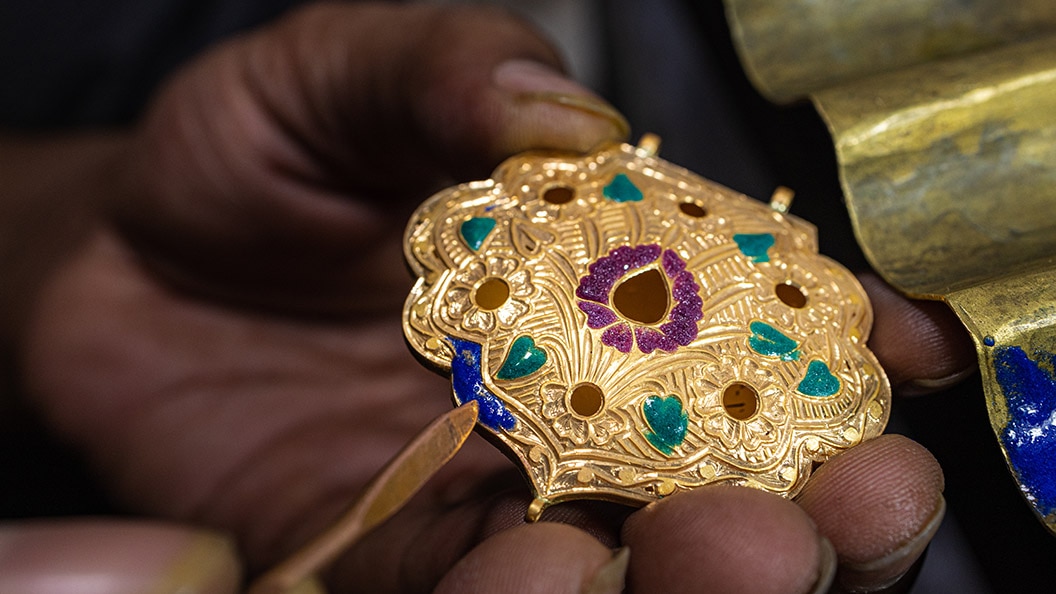 Today, Rajasthani artisans from the Soni or Verma community, known as meenakars, practise this craft. It's said that Raja Man Singh of Amber popularised this exquisite art form in Rajasthan in the early 16th century. He invited skilled meenakars who came from Lahore to Jaipur, which then emerged as a hub for the art.