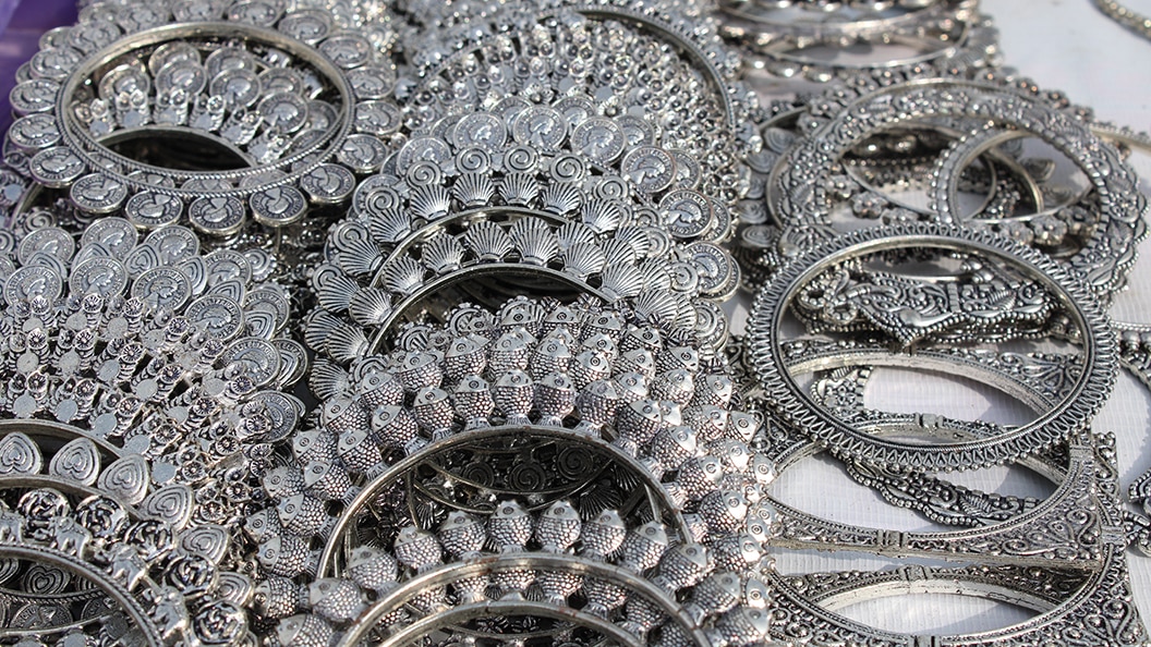 Artisans carve intricate patterns onto the surface of silver ornaments. Most patterns are floral or geometric. Nature-inspired designs are most common. The process involves sketching the design and following the pattern on the silver surface with precision-targeted carving tools. It requires patience and an intimate understanding of the metal. Once carved, the pieces are often oxidised to enhance some of the contours, besides giving them an antique appearance.