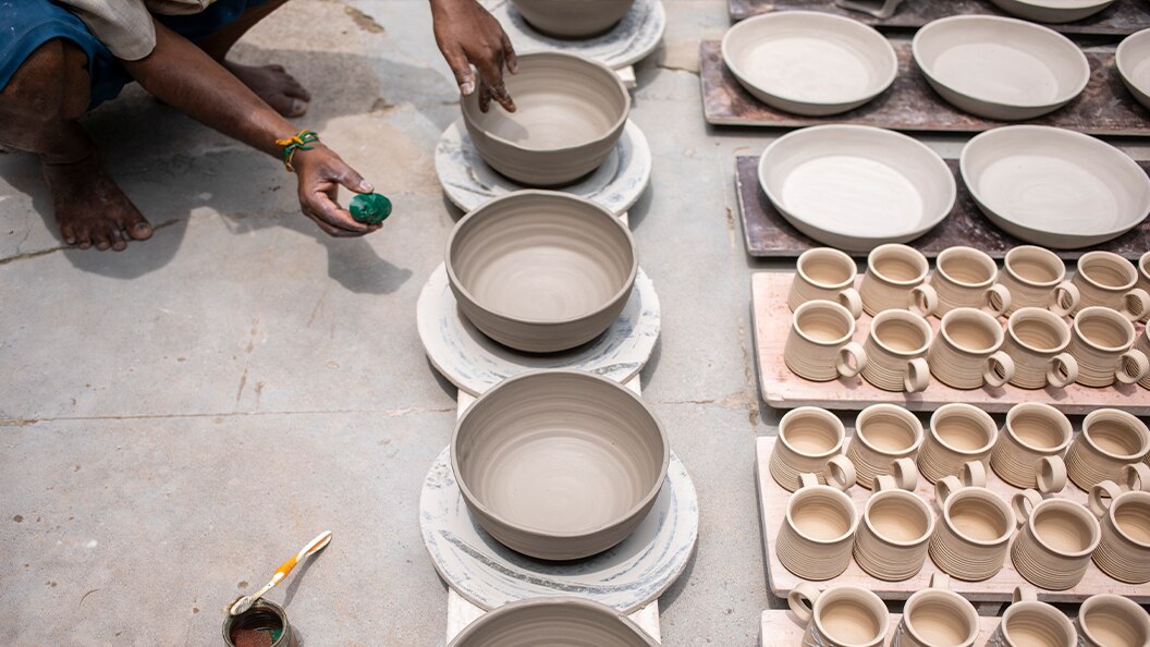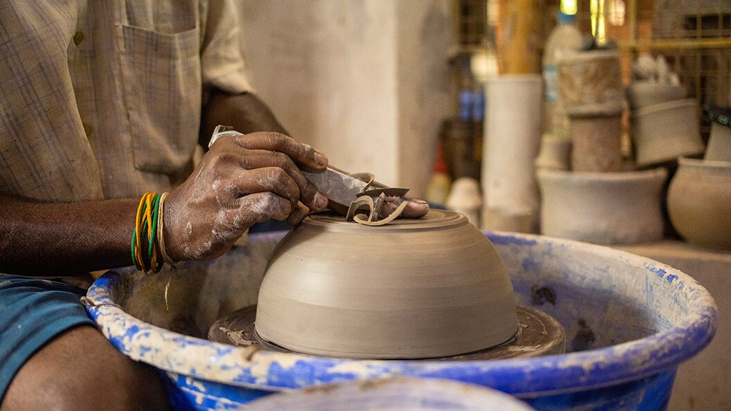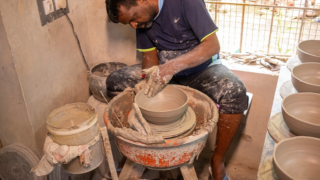 The Union Territory of Puducherry has a community of studio potters crafting functional tableware and unique art pieces. The community sources the clay from the nearby Ousteri Lake, and uses wood from Casuarina trees for firing.