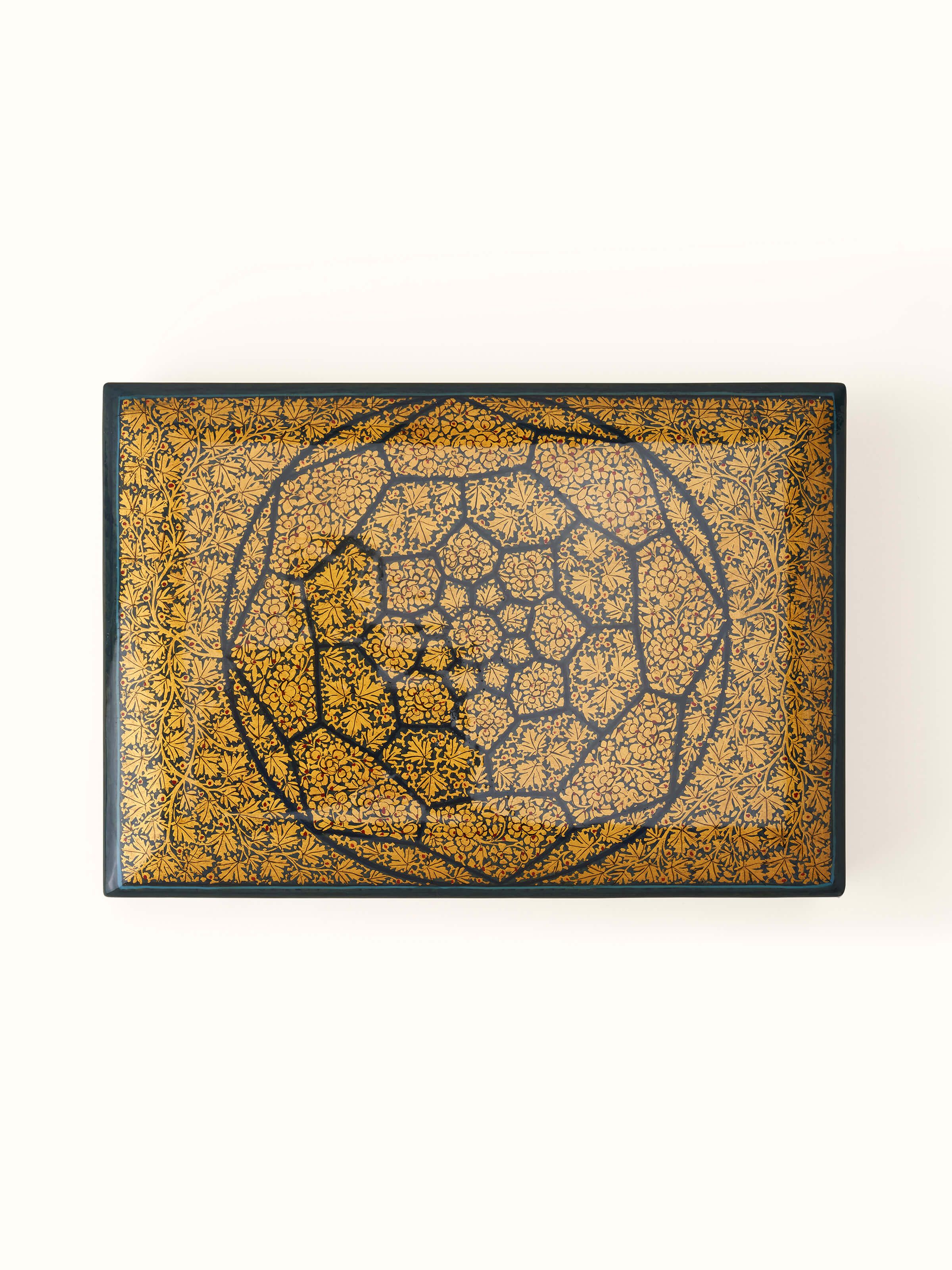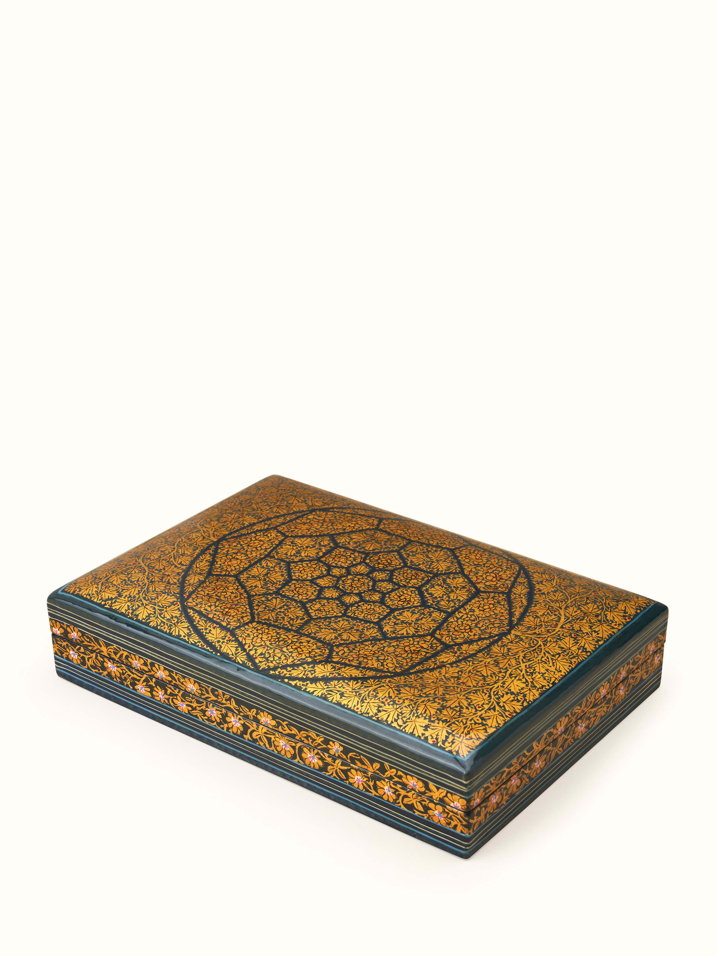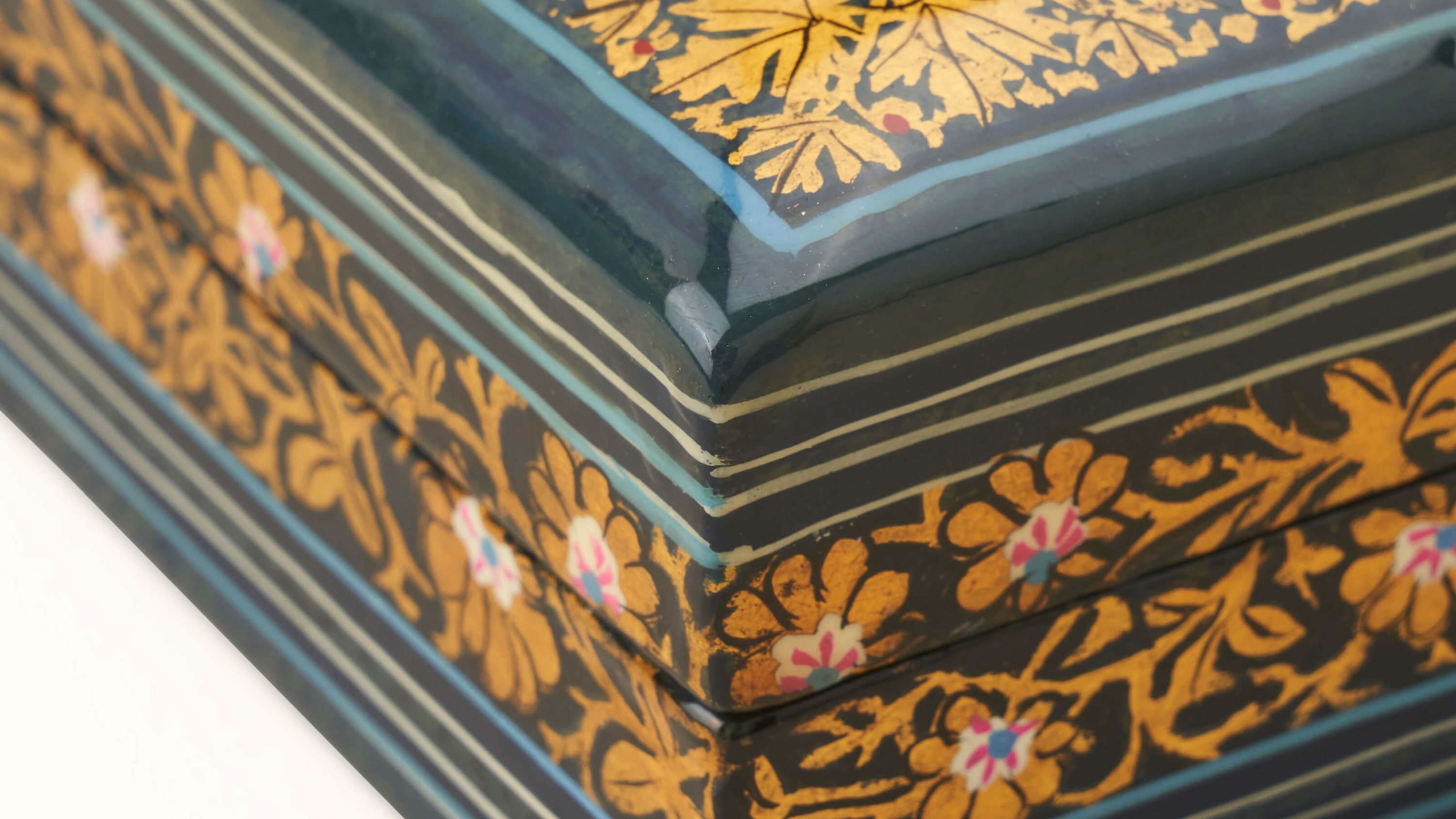 The story behind the commonly used name–Papier mâché (French for mashed paper)–goes back to the 19th century when luxurious cases made in this style became popular across Europe through French traders of Kashmir’s coveted shawls.