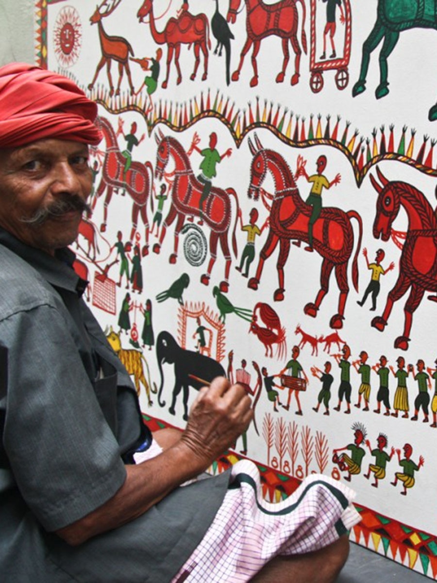 The Warli tribe from Maharashtra has become well known for its mural art. The art form has been in existence since the 10th century and continues to be practised. One of the largest tribes in India, the Warli tribespeople document their history, tradition and culture through their art.